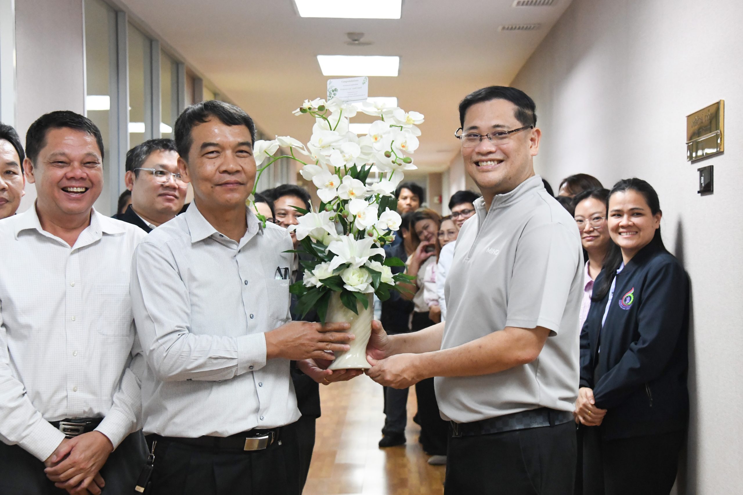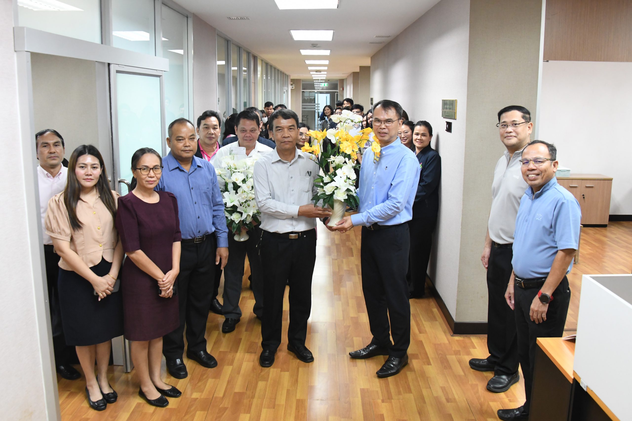 วันที่ 7 ตุลาคม 2568 นายวิโรจน์ วิจิตร ผู้อำนวยการสำนักบริหารอ้อยและน้ำตาลทราย พร้อมคณะผู้บริหาร และเจ้าหน้าที่ สบน. มอบดอกไม้แสดงความยินดีและต้อนรับ นายพลาวุธ วงศ์วิวัฒน์ และนายสิทธิรงณ์ เร่งเงียบ ในโอกาสเข้ารับตำแหน่ง รองเลขาธิการคณะกรรมการอ้อยและน้ำตาลทราย